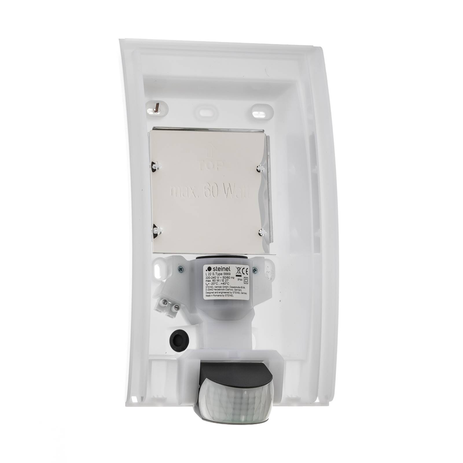 Lampada da parete angolare per esterni L 22 S con rilevatore di movimento integratoUn apparecchio versatile da utilizzare su qualsiasi facciata è la lampada per esterni L 22 S di Steinel, realizzata in acciaio inox e verniciata in antracite. Dotata di una copertura in plastica bianca opalina, fornisce un'illuminazione non abbagliante quando il sensore rileva un movimento. - Sensore con protezione sneak-by e campo di rilevamento di 180°- Portata regolabile da 3 a 10 m- Durata della luce regolabile da 8 sec. a 35 min.- Risposta luminosità sensore crepuscolare regolabile da 2 a 2.000 lux- Raggio di rotazione del sensore 90°- Resistenza agli urti IK07- Altezza di montaggio max. 3 m