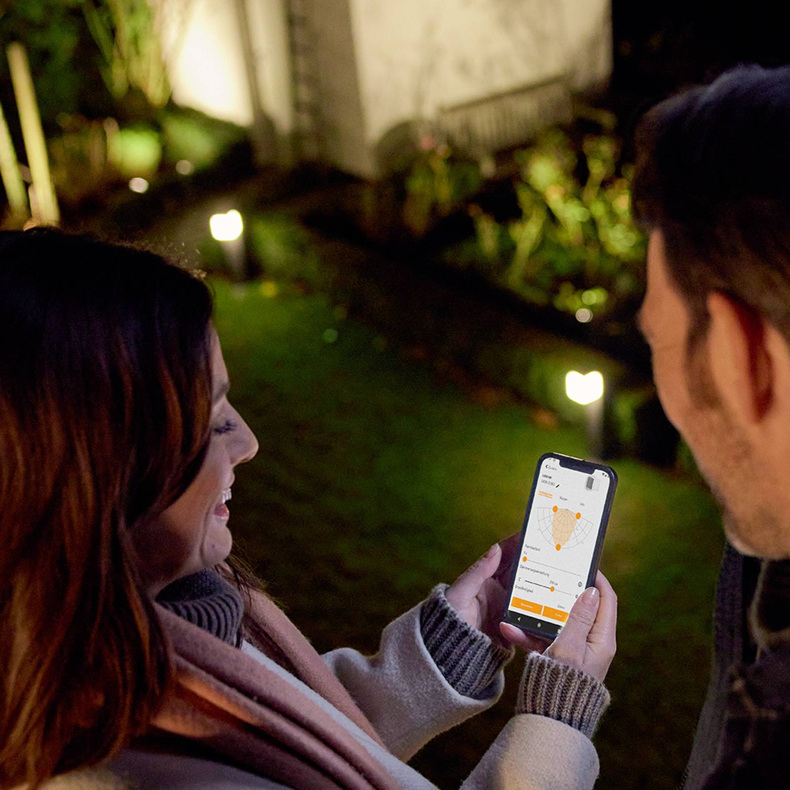 Dimmerabile tramite app - Applique da esterno a LED L 830 C, senza sensore L'applique da esterno a LED a forma cubica L 830 C è una lampada da esterno senza sensore, che arreda sapientemente ogni parete della casa con il suo aspetto elegante e la sua luce bianca calda. La luce può essere dimmerata utilizzando l'app SMART+ Remote e l'innovativa tecnologia Bluetooth. L'applique da esterno a LED può anche essere collegata in rete con altre lampade LED tramite Bluetooth. Se nel gruppo di luci è inclusa una luce a sensore, tutte le luci si accendono automaticamente non appena viene rilevato un movimento.