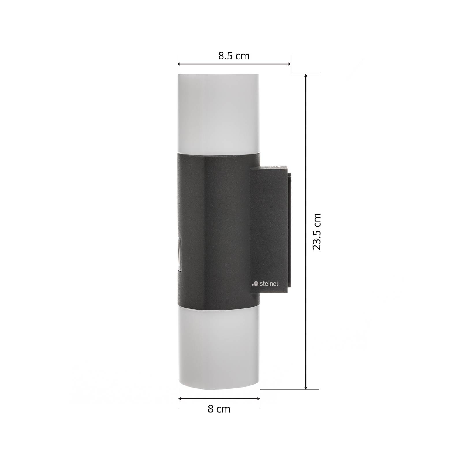 Apparecchio da parete per esterni a LED L 910 S: versione uplight/downlight per luce d'ambiente Questo sottile apparecchio da parete per esterni a LED con uplight e downlight decora le facciate moderne in modo discreto, crea accenti luminosi in tutta l'area esterna e lo fa in modo ecologico ed economico, perché i LED integrati sono luminosi e di lunga durata. - luce di base opzionale (10 %), luce continua opzionale (4 h) - commutazione simultanea della luce per apparecchi collegati in rete - LED: durata fino a 30 anni (con Ø 4,5 h / giorno) - colore della luce bianco caldo (3.000 Kelvin) - angolo di rilevamento: 180° - raggio d'azione: 8 m - impostazione del tempo: 2 o 15 min - accensione morbida della luce - altezza di montaggio max. 2,5 m
