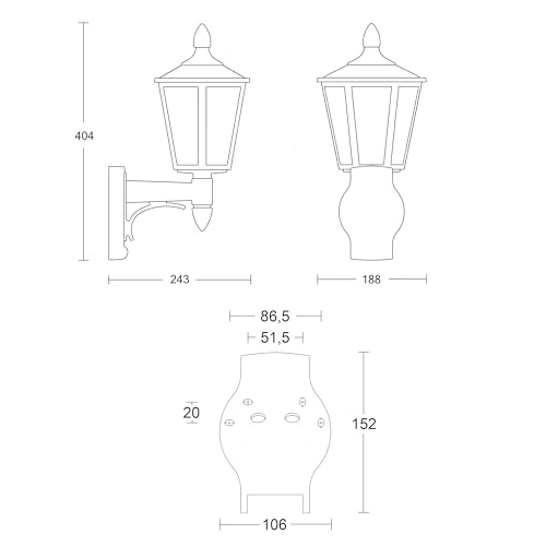 Classica lampada da esterno in ottica a lanterna senza rilevatore di movimento, ottima per l'illuminazione esterna ad esempio di giardino, terrazza, garage, balcone, casetta da giardino, sentieri, vialetti o ingresso di casa