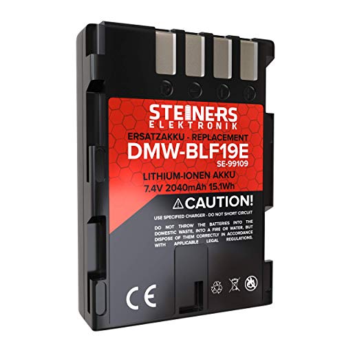 Steiners Elektronik - Batteria per Panasonic DMW-BLF19/BLF19e | Compatibile con Panasonic Lumix DC GH5, GH5S, DMC GH3, GH4, GH4R e Sigma BP-61 | 2040 mAh | 7,4 Volt | 15,1 Wattora - Con Infochip