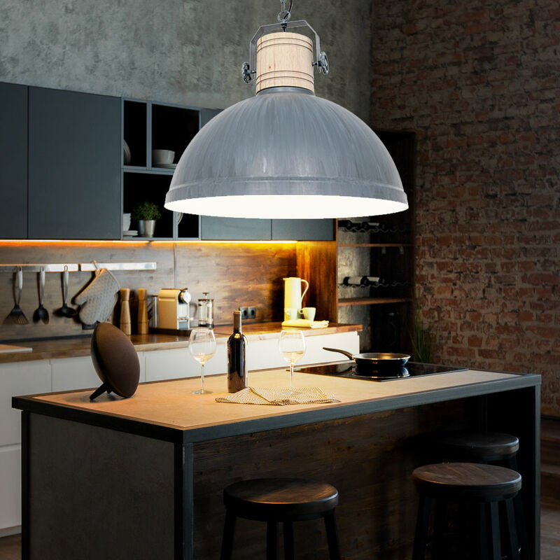 Descrizione Questa lampada a sospensione grigia a 1 lampada attira l'attenzione di tutti! Realizzato in metallo, legno di faggio e vetro, incarna un design elegante. La presa E27 è adatta per sorgenti luminose fino a 60 watt. In soggiorno, in sala da pranzo, sopra il tavolo da pranzo o in cucina, questa bellissima lampada a sospensione in stile country può essere integrata in molti modi. La lampadina non è inclusa nella fornitura. Particolare lampada • Tipo di lampada: lampada a sospensione • Materiale: vetro, metallo, legno • Colore: naturale, grigio • Grado di protezione: IP20 • Classe di protezione: 1 • Regolazione dell'altitudine (al montaggio) • Diametro x altezza in cm: 50x170 • Presa: 1x E27 • Lampadina inclusa: No • Potenza della lampada: 1x massimo 60 watt • Alimentazione: 230V, 50Hz