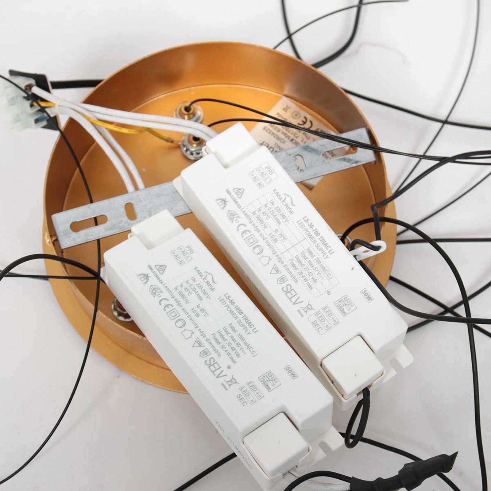 Lampada a sospensione LED a tre lampade Ringlux - distribuzione della luce indiretta e diretta La lampada a sospensione LED Ringlux colpisce per il design innovativo del paralume. È dotata di un elemento del paralume a forma di anello i cui bordi sono dotati di LED nella parte superiore e inferiore, in modo da emettere luce diretta e indiretta. Come ulteriore fonte di luce, al centro dell'anello del paralume si trova un disco regolabile con illuminazione a LED. Ringlux si abbina a molti stili di arredamento moderni - dimmerabile esternamente