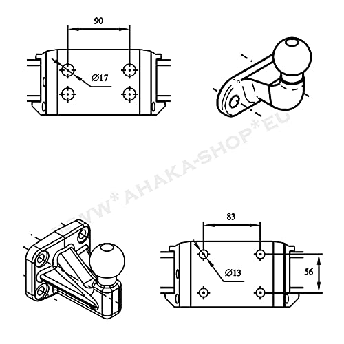Steinhof Universale Gradino di Traino sul Lato Destro Pedana per Gancio di Traino per Sfera flangiata a 2 e 4 Fori per Gancio di Traino (90 mm / 83 mm x 56 mm)