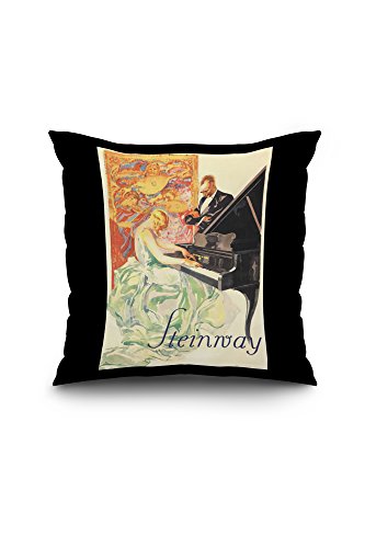 Steinway Vintage Poster (artist: Von Axster Heudtlass, Werner) Germany c. 1949 (20x20 Spun Polyester Pillow Case, Black Border)