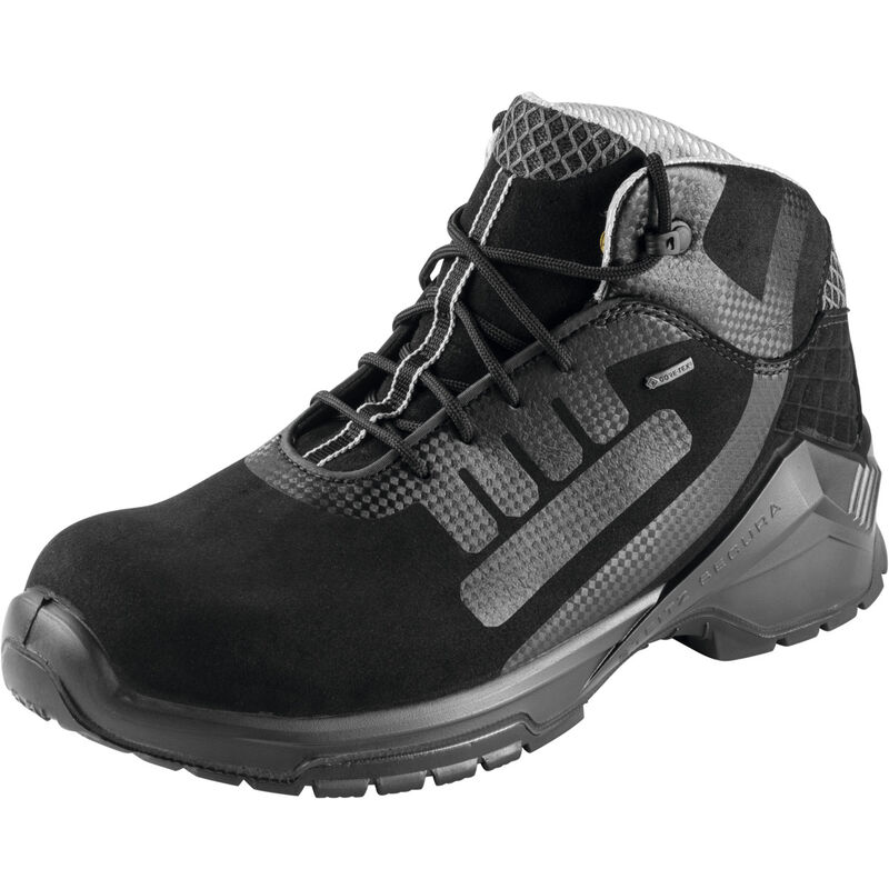 Scarpa di sicurezza con membrana in GORE-TEX® per un comfort ottimale. Umidità e calore eccessivo vengono condotti verso l'esterno velocemente. La pelle impermeabile traspirante aiuta a mantenere un clima ottimale all'interno della scarpa. Con ammortizzazione nella zona del tallone SECURA VARIO®. * Tomaia in microfibra ultraleggera. * Linguetta. * Applicazioni sulla tomaia in ottica carbonio. * Suola esterna TPU Athletic, nero. * Struttura senza cuciture. * Sottopiede in vero cuoio. * Comodo plantare ERGO-SOFT ESD. Norma: EN ISO 20345:2011 S2 SRC Einlagenversorgung baumustergeprüft nach DGUV Regel 191. Nota: Esecuzione larga XB al n. art. 092566. Comprende l'elemento smorzatore (rosso e nero) Dati tecnici Proprietà elettrostatiche EGB/ESD Tipo di prodotto Stivali di sicurezza Genere da uomo Norma Fornitura di inserti omologati a norma DGUV 191 Colore nero Grado di protezione S2 Isolamento dal freddo fino a -20 °C Numero di scarpa UE 46 Materiale puntale protettivo Alluminio