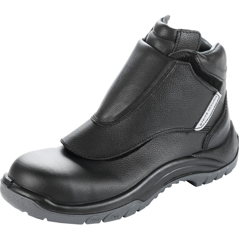 Calzatura alta modello saldatore e fonditore VX 7380 PERB per l'impiego in condizioni estreme. Sistema a grondaia per far scorrere i liquidi caldi. * Linguetta chiusa. * Suola esterna Perbunan, antracite. * Ammortizzazione nella zona del tallone SECURA VARIO®. * Sottopiede in vero cuoio. * Comodo plantare ERGO-COOL®. Norma: EN ISO 20349:2010 SRC WG WRU FO HRO Einlagenversorgung baumustergeprüft nach DGUV Regel 191. Nota: Esecuzione larga XB al n. art. 092815. Già disponibili nelle misure UE 39 - 46, disponibili su ordinazione nelle misure UE 38 - 48. Comprende l'elemento smorzatore (rosso e nero) Dati tecnici Tipo di prodotto Stivali di sicurezza Genere Unisex Norma Fornitura di inserti omologati a norma DGUV 191 Grado di protezione S3 Resistenza antiperforazione Acciaio Comportamento della suola esterna al contatto con il calore (punto di fusione della suola esterna), °C Oltre 200 Numero di scarpa UE 46 Materiale puntale protettivo Alluminio Caratteristica Ammortizzazione Vario