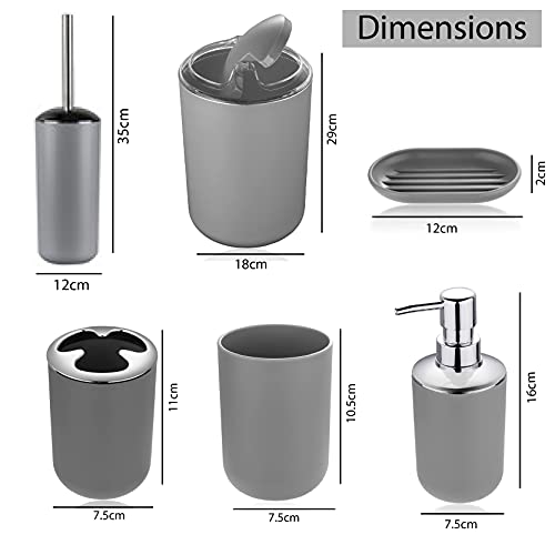 Stella, Set di 6 Accessori da Bagno con Cestino, Dispenser, Porta saponetta, Bicchiere, portaspazzolino e scopino, Colore Marrone M17