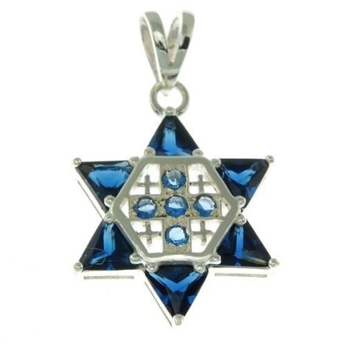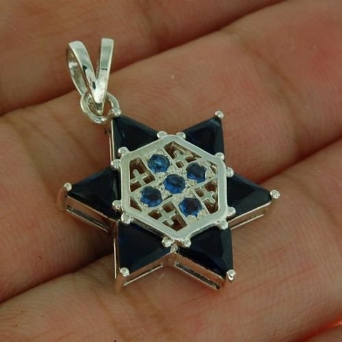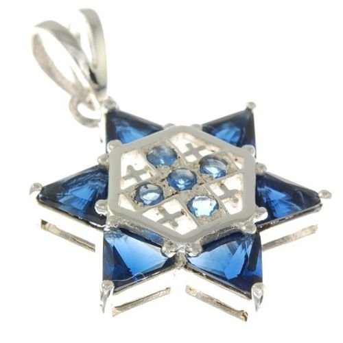 Stella di David con croce di Gerusalemme in argento 925 ciondolo con pietre colorate