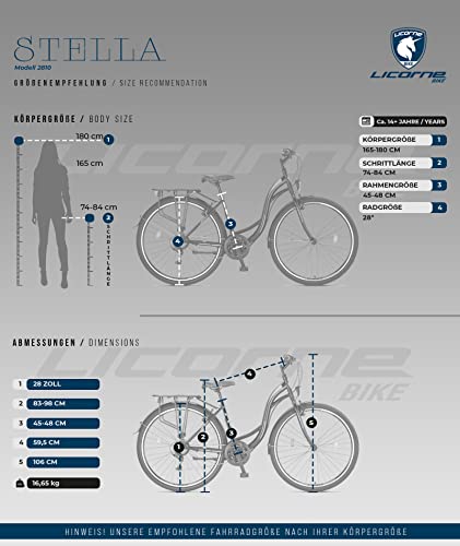 Stella 28 Pollici Bici da Donna, da 160 cm, Bicicletta Bici Citybike CTB Donna Vintage Retro, Luce Bici, Cambio 21 velocità, City Bike da Donna, Bici da Donna,Bici da Città