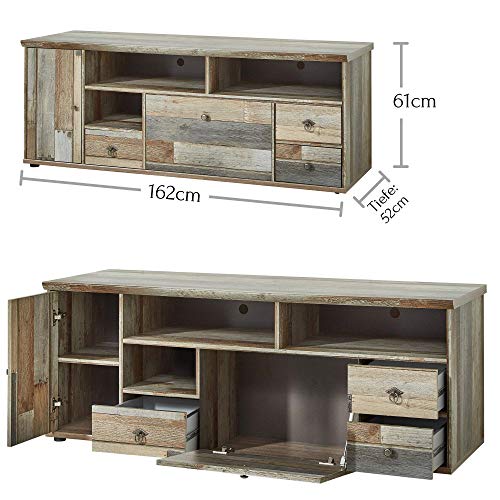 Stella Trading Bonanza-Mobile TV Vintage Effetto, Legno, Driftwood NB, Lavagna Bassa 162 x 61 cm