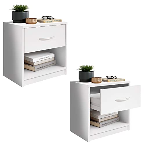 Stella Trading, Comodino PEPE in bianco, Comodino semplice con un cassetto adatto ad ogni letto e camera da letto, 39 x 41 x 28 cm