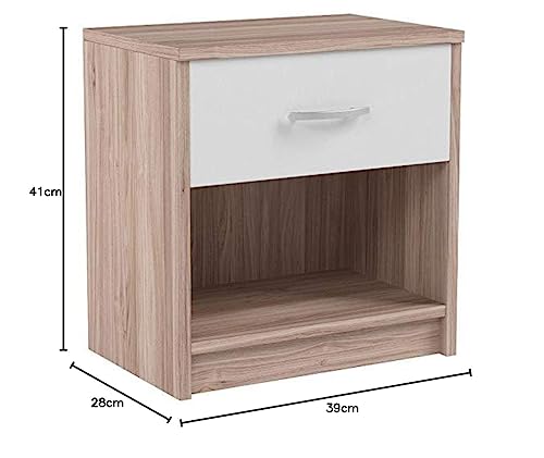 Stella Trading, Comodino PEPE in rovere sonoma, bianco, Comodino semplice con un cassetto adatto ad ogni letto e camera da letto, 39 x 41 x 28 cm