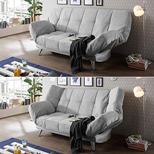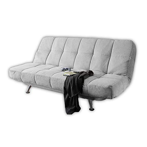 Stella Trading Ikar - Divano letto in microfibra effetto scamosciato, colore 01 argento, 208 x 102 x 98 cm