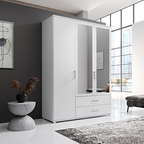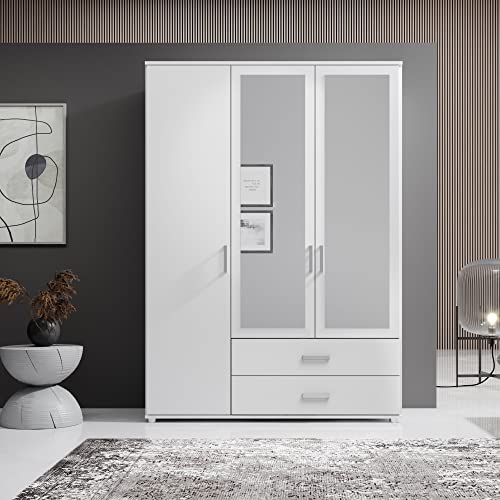 Stella Trading IVAR specchi e cassetti-Versatile Armadio a 3 Ante in Bianco, Legno ingegnerizzato, 1 Holztür / 2 Spiegeltüren