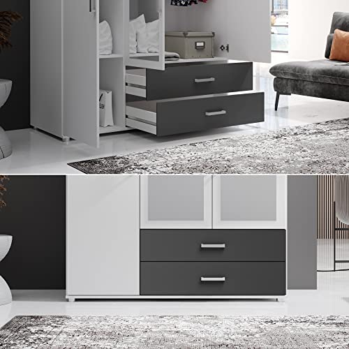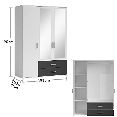 Stella Trading Ivar specchi e cassetti-Versatile Armadio a 3 Ante in Bianco, Grafite, Legno ingegnerizzato, 1 Holztür / 2 Spiegeltüren