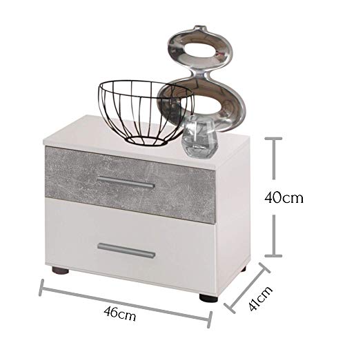 Stella Trading Martina Effetto Moderno Comodino con Due cassetti per Il Vostro Letto, Bianco/Cemento, Nachtkommode
