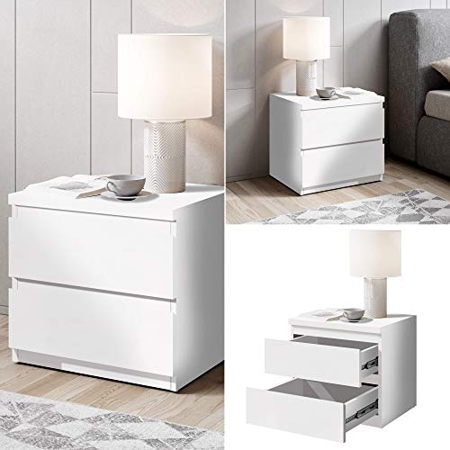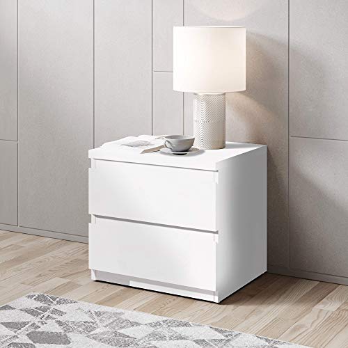 Stella Trading OLLI Due cassetti in Bianco - Comodino Moderno con Spazio per Il Vostro Letto, Materiale a Base di Legno, 45 x 44 x 38 cm
