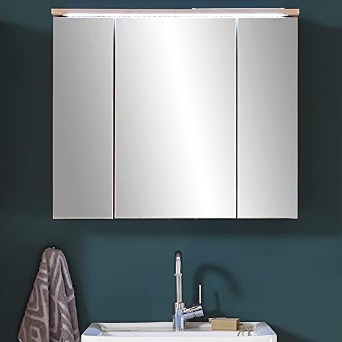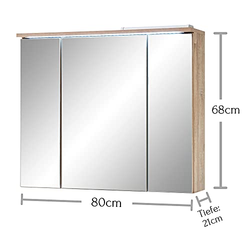 Stella Trading Roof, armadietto a Specchio per Il Bagno con Illuminazione a LED, Effetto Quercia, Stile Antico, Legno ingegnerizzato, Rovere Old Style, 80 x 68 x 21 cm