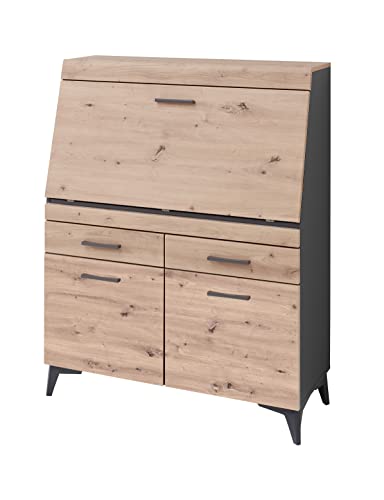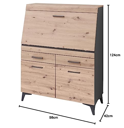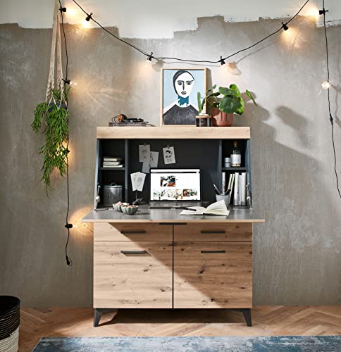 Stella Trading Secret-Scrivania in Legno Salvaspazio con cassetti, ingegnerizzato, Quercia Artisan/Grafite, 98 x 124 x 42 cm