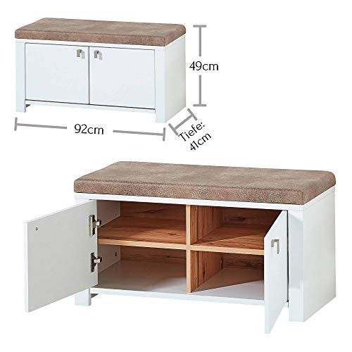 Stella Trading SERPIO-Scarpiera con Seduta Bianca Opaca, in faggio Massiccio - Comoda Panca con Spazio per Il Vostro corridoio, 92 x 49 x 41 cm