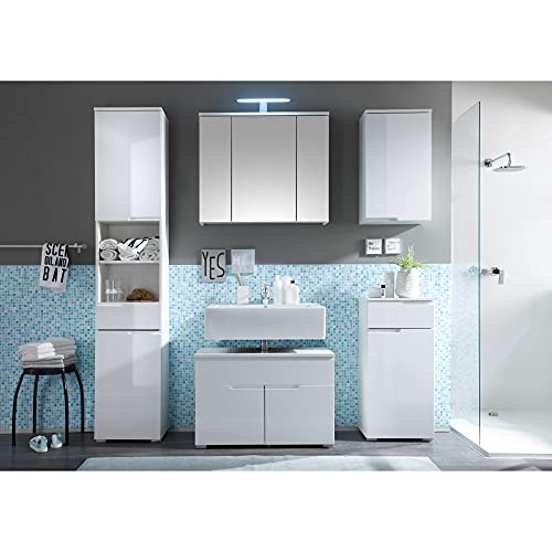 Stella Trading Spezie Spice-Mobiletto da Bagno, Molto Spazio, Bianco MDF Bianco Lucido, 80 x 54 x 46 cm