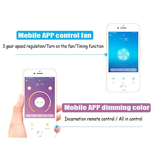 Ventilatore da soffitto con telecomando e controllo APP Dimmerabile: 3 velocità del vento regolabili. è possibile impostare tre diverse velocità del vento. Poiché la lampada da soffitto del ventilatore adotta il design della circolazione dell'aria, la resistenza dell'aria viene effettivamente ridotta, in modo da poter godere di un vento calmo e morbido.