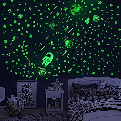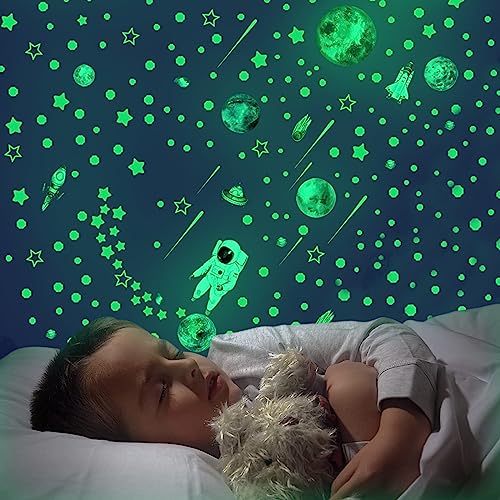 ⭐Decorazione per la stanza dei bambini: crea le tue galassie magiche con stelle luminose e una grande luna piena fluorescente per creare costellazioni naturalmente scintillanti che aggiungono fascino a qualsiasi stanza della tua casa. I pianeti e le stelle incandescenti rendono la stanza luminosa per i bambini che hanno paura del buio. Aiuta il bambino a dormire meglio.