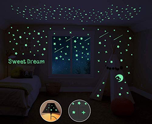 ❤211 pezzi di adesivi illuminati: 211 pezzi in un set, tra cui 1 luna, 10 meteore, 40 grandi stelle a cinque punte, 60 stelle a cinque punte di medie dimensioni, 100 piccole stelle a cinque punte. Puoi scegliere tra.