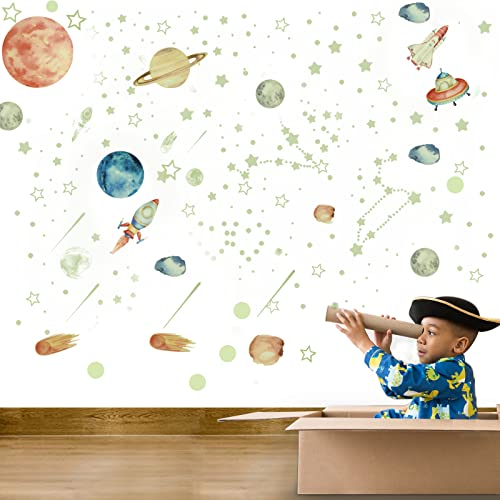 【Stelle Fosorescenti Soffitto】Otterrai 282 stelle e pianeti brillanti al buio per il soffitto. di cui stelle di diverse dimensioni di diverse dimensioni, così come astronavi aliene, alieni, astronauti, razzi, ecc. ti dà un cielo stellato realistico