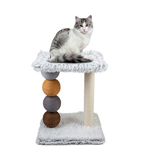 questo gioco per gatti che si compone di una solida base rivestita in morbido peluche soffice, con colonna tiragraffi centrale in robusto sisal in corda e dall'altro lato 4 palle colorate rivestite in sisal dando stimolazione visiva ai vostri amici a 4 zampe rendendolo un animale felice
