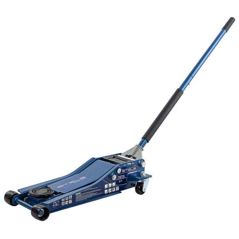 STELS - Cric roulant hydraulique QUICK LIFT Pro - 2t - 75 à 515 mm • Cric professionnel haute performance • Idéal pour les travaux de mécanique en atelier ou à domicile • Levage simple et rapide de charges jusqu'à 2000 kg Mécanique en atelier, réparations... Le cric hydraulique roulant STELS est un outil professionnel. Il est conçu pour le levage rapide et simple de charges allant jusqu'à 3 tonnes . Il sera notamment utile pour les travaux de mécanique, en atelier automobiles pour divers types de réparations: changement de roue, maintenance, dépannage... Le cric a été testé avec une surchage de 25%, test qu'il a aisément réussi, démontrant sa haute qualité et ses performances notables. Les + produit Rapide et efficace Grande amplitude Préserve vos véhicules Le cric dispose du système QUICKLIFT qui permet, en seulement 12 coups de levier, d'atteindre la hauteur de levage maximale ! Votre travail est simplifié et accéléré, vous gagnez en productivité ! Ce modèle LOW PROFILE permet