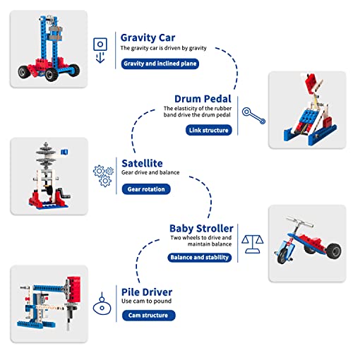 Da principiante a professionista: i progetti iniziano con un livello principiante facile e passano gradualmente a progetti più impegnativi attraverso altri 3 livelli. Questo kit può crescere con tuo figlio man mano che diventa più avanzato nella sua comprensione e capacità. I bambini imparano tutto, compresa la gravità e il piano inclinato, la trasmissione a ingranaggi, la leva, la forza centrifuga e centripeta, il pendolo, la trasmissione a cinghia e a vite senza fine e molto altro.