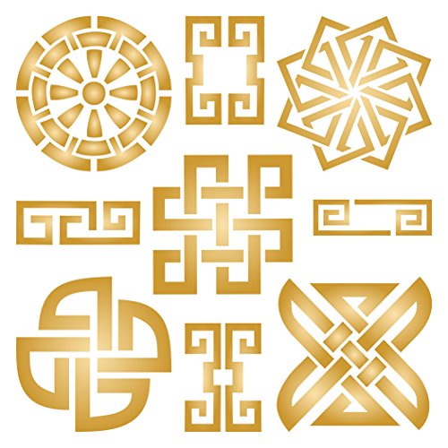 Stencil asiatico - 11,5 x 11,5 cm (S) - Riutilizzabile Simbolo Orientale Personaggio Modello Taoista Wall Stencil