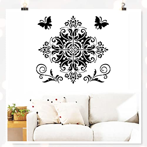 Stencil Bordi Fiori Modello Mandala - Pittura Stampini Riutilizzabile Per Disegnare Parete Pavimento In Legno Mobili Piastrella Pietra Su Roccia Decorazione, 21x28cm, 9 Pz