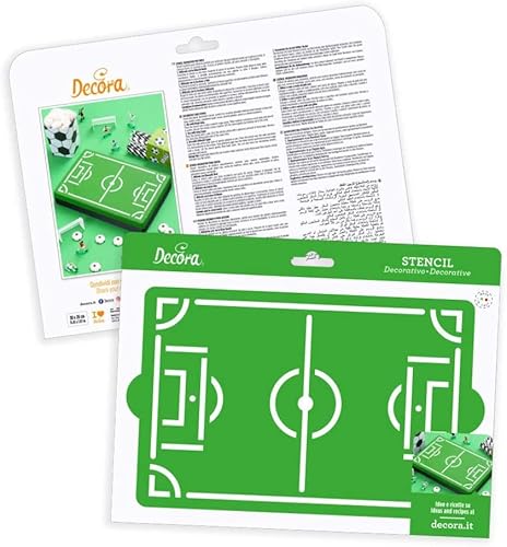 Stencil decorativo CAMPO da CALCIO rettangolare 30 x 20 cm - ideale per decorare torte e dolci dalla tua squadra del cuore - con lo zucchero a velo, la ghiaccia, crema al burro, cacao, spray colorati