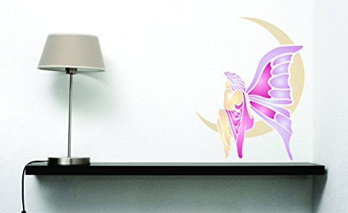 Stencil con fatina della luna, 16,5 x 21,5 cm (S), riutilizzabile, fata elfo, fata, magia, stencil da parete