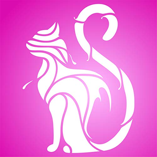 Stencil a forma di gatto, riutilizzabile, decorazione geometrica stilizzata, stencil da parete per animali domestici
