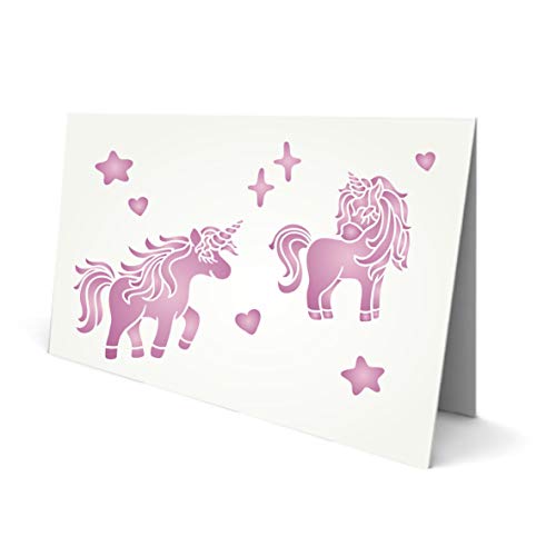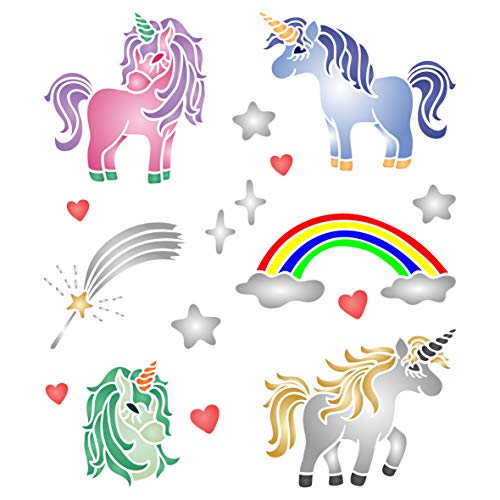 Set di stencil a forma di unicorno, 25,40 x 29,21 cm (L) - Stencil per pareti originali per bambini arcobaleno unicorni