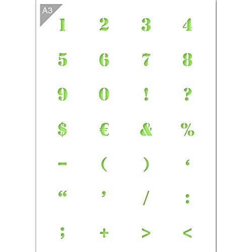 Stencil di numeri e simboli - Stencil di plastica - A3 42 x 29,7 cm - Numeri di altezza 2 cm - Stencil riutilizzabile per bambini - Pittura, forno, artigianato, muro, stencil di mobili