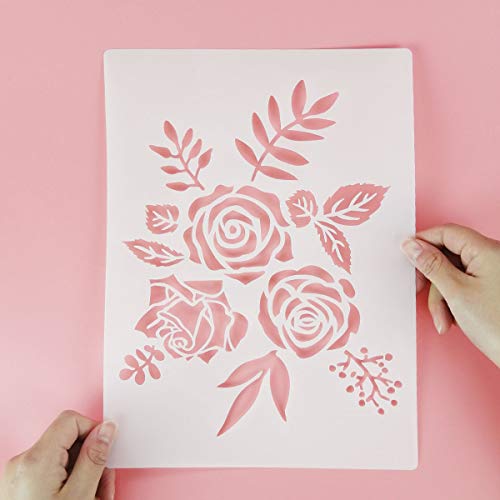2 pezzi di stencil rosa con formato A4, rendono facile la creazione artistica! Gli stencil sono facili da usare e possono aiutarti a realizzare creazioni artigianali migliori per dipingere su mobili e legno.