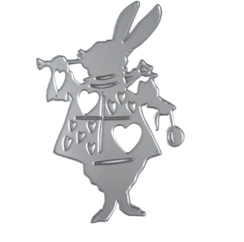 Stencil universale per fustellatura, scrapbooking e decorazioni, in acciaio al carbonio, con la sagoma del Bianconiglio di Alice nel Paese delle Meraviglie con orologio da taschino e tunica a cuori