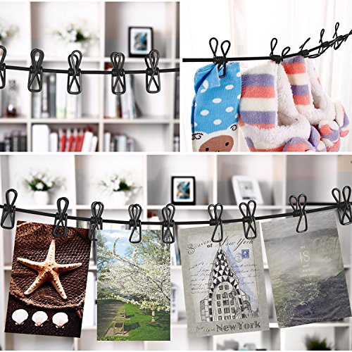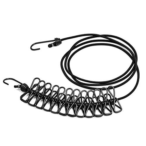 2, La corda elastica con 12 morsetti può essere allungato liberamente e portatile, dotato di 2 ganci alle estremità della corda per il collegamento facile ovunque.