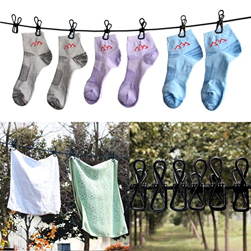 Stendibiancheria,KKtick portatile elastico Clothesline corda per asciugare clip da viaggio 12 pezzi per la casa, di viaggio,180-360cm (nero)