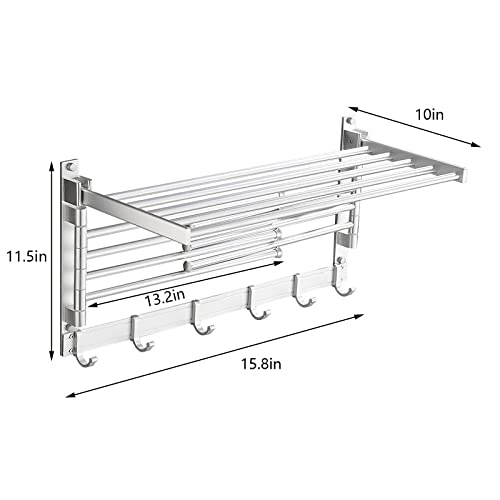 Stendibiancheria da parete con ganci, in metallo, a 7 bracci, salvaspazio, da parete, bagno, bagno, in alluminio spaziale