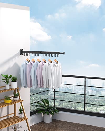 Risparmio di spazio: l'appendiabiti a parete pieghevole ruota di 180 gradi da sinistra a destra, con 12 fori per appendere i vestiti. Le braccia possono essere piegate contro il muro per risparmiare spazio quando non lo si utilizza. Il palo retrattile nella parte superiore può essere utilizzato per appendere gli asciugamani.