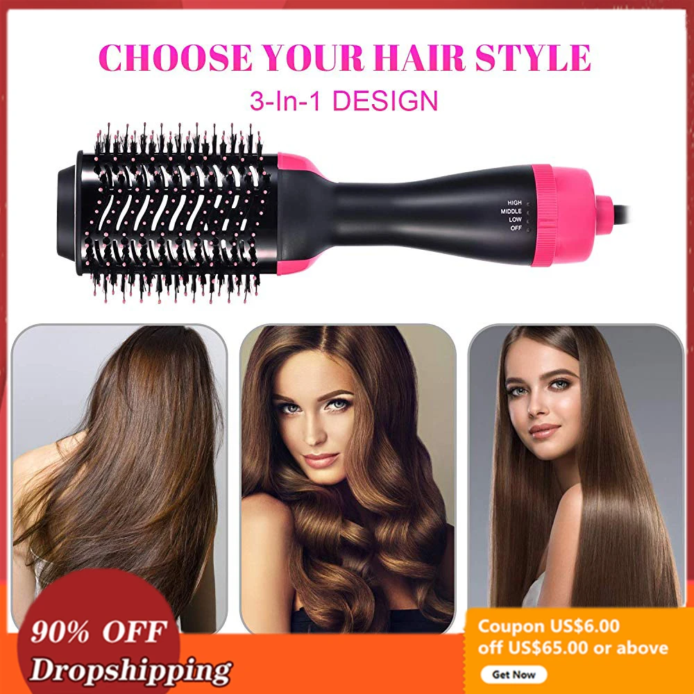 3 in 1 One Step Hair Dryer And Volumizer Hot Air Brush Negative Ion Dryer Straight&Curls Styling Salon Electric Hairdryer Brush
