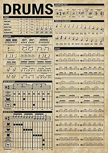 ARA STEP - Poster vintage della conoscenza degli strumenti musicali da parete, senza cornice, 297 x 420 mm, batteria