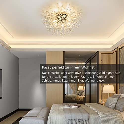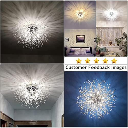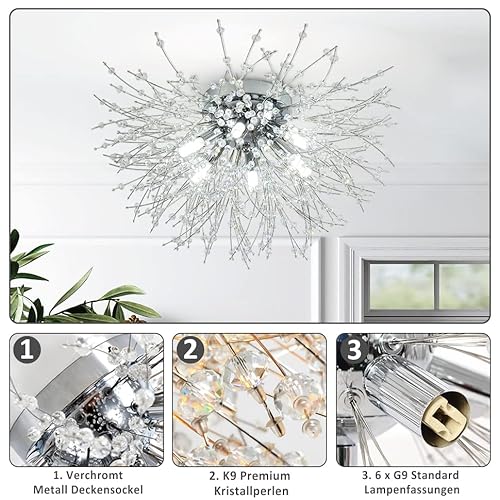 Stepeak Moderna lampada da soffitto in cristallo, lampadario cromato a fuoco d'artificio, 6 luci G9, per soggiorno, camera da letto, sala da pranzo, cucina, corridoio