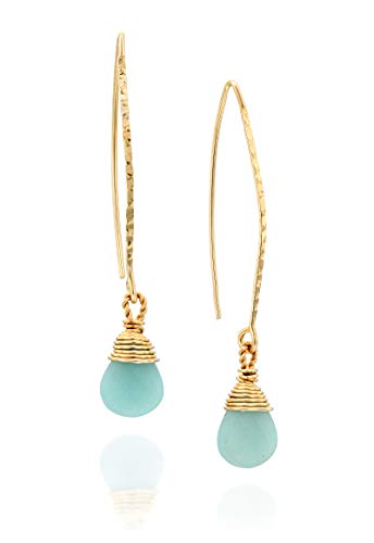 Stera Jewelry - Orecchini a filo lungo da donna con pietre amazzonite avvolte a mano